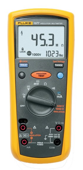 Meter can perform at least 1000 insulation tests with fresh alkaline batteries at room temperature. These are standard tests of 1000 V into 1 MΩ with a duty cycle of 5 seconds on and 25 seconds off. |